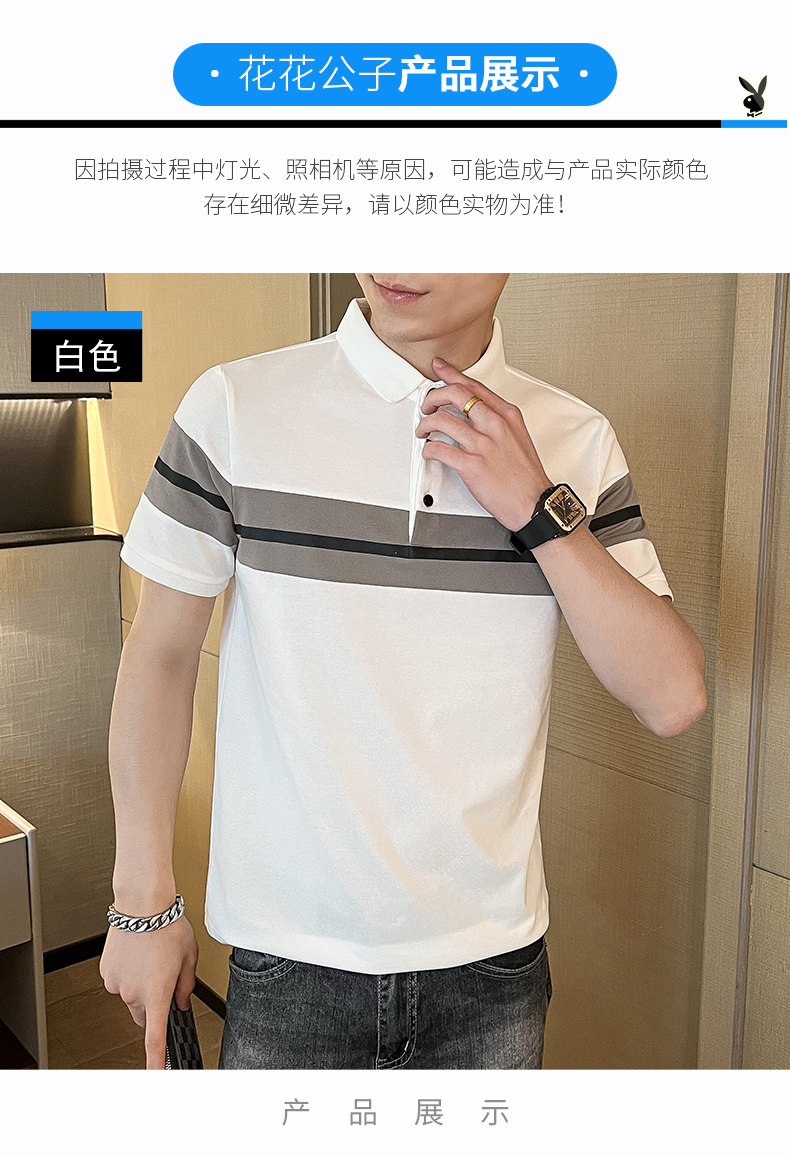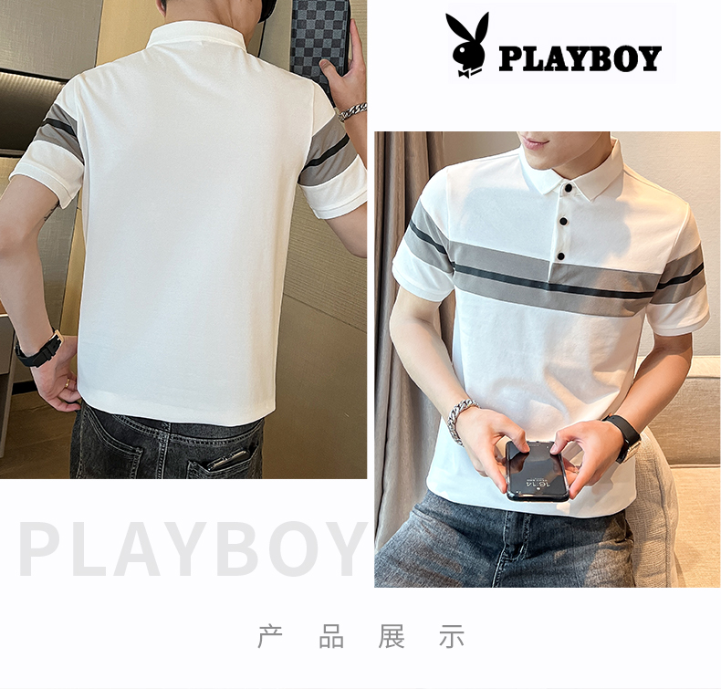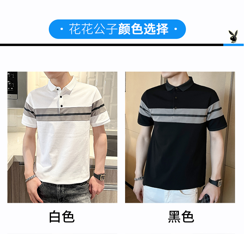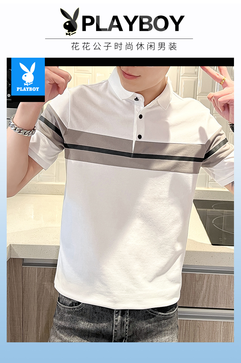 花花公子短袖t恤男士潮流半袖上衣服夏季新款寬松翻領(lǐng)Polo衫男裝
