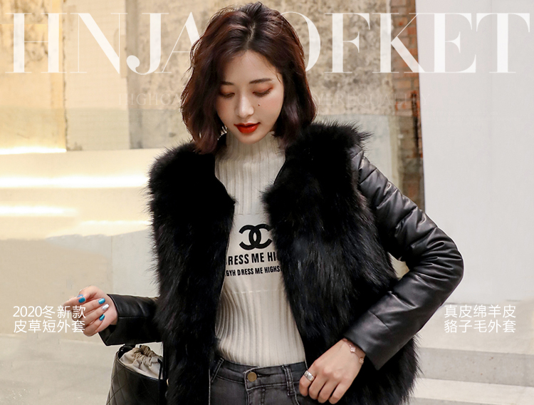 2020年新款海寧真皮短款皮草皮衣女冬貉子毛拼接綿羊皮羽絨服外套