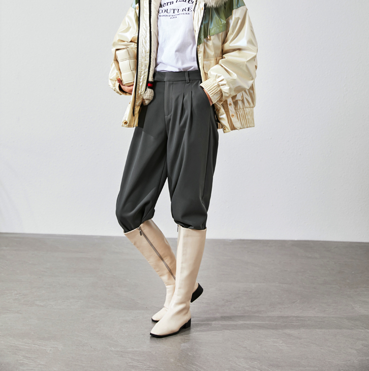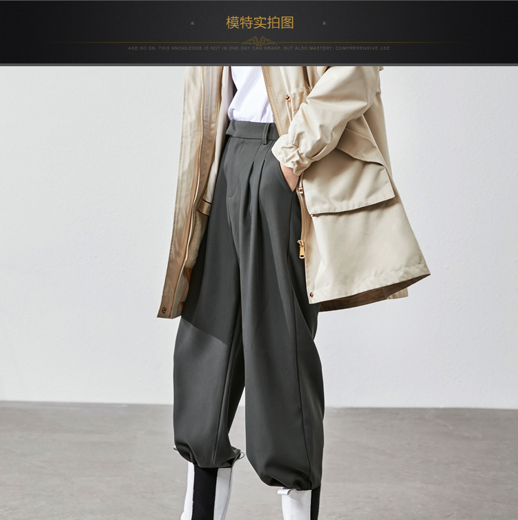 2021春裝新款女裝 時(shí)尚秋冬休閑長(zhǎng)褲高腰垂墜感闊腿褲英倫風(fēng)