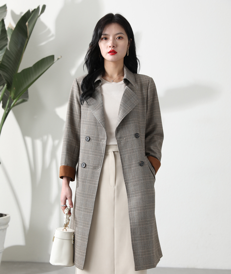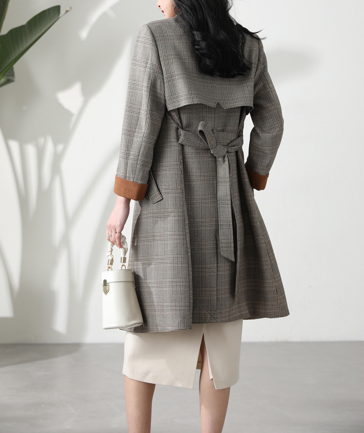2021年春秋裝新款女裝今年流行的中長款修身格子風衣外套大衣高貴