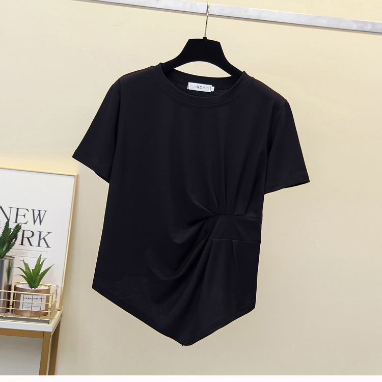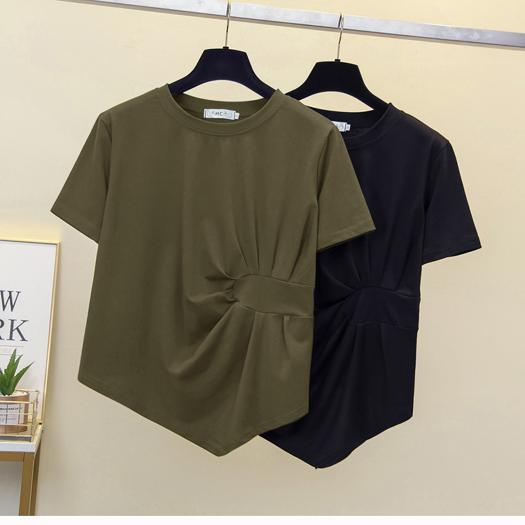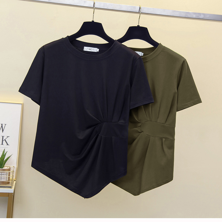 寬松遮肉不規(guī)則短袖T恤2022夏裝新款大碼女裝胖妹妹mm顯瘦上衣潮