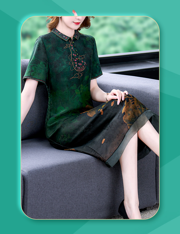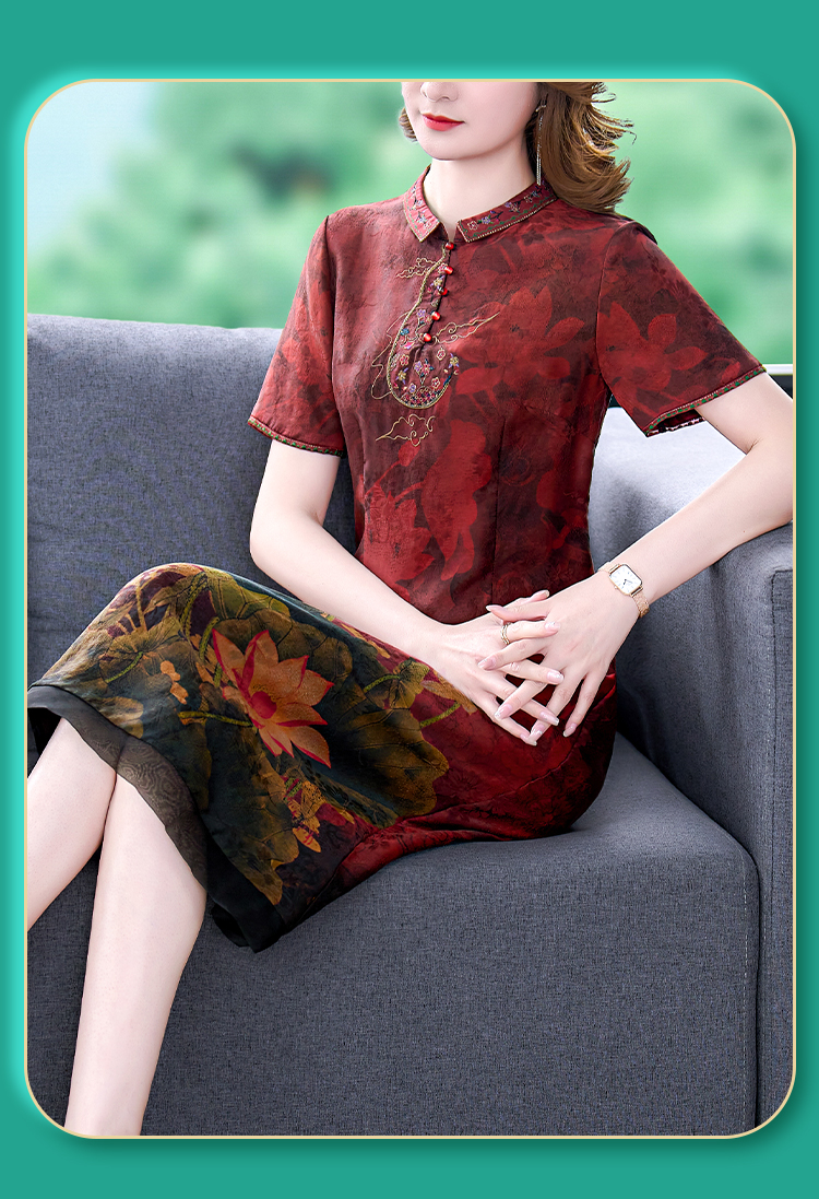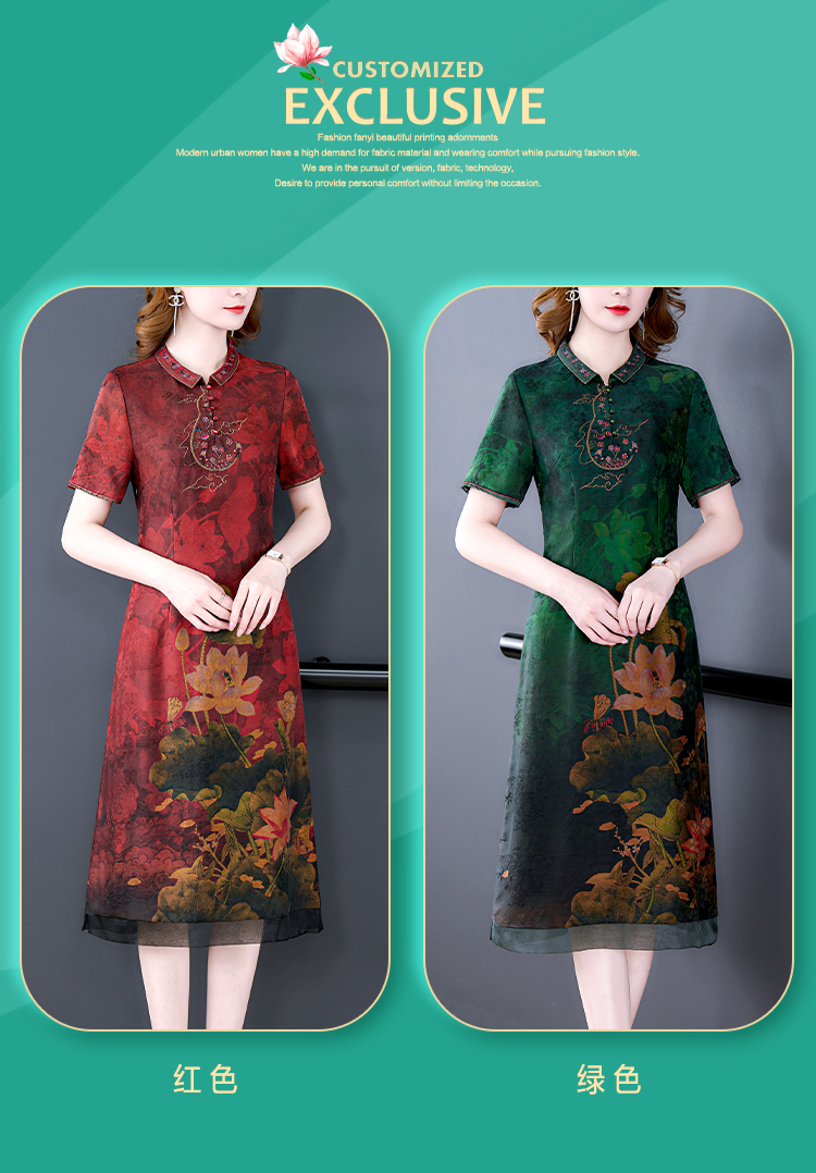 設(shè)計(jì)感連衣裙新款2022年大碼女裝胖mm夏季復(fù)古立領(lǐng)印花顯瘦裙子潮