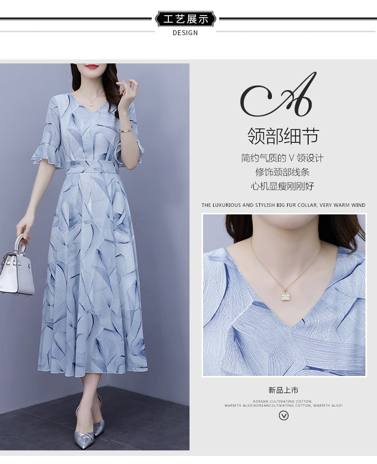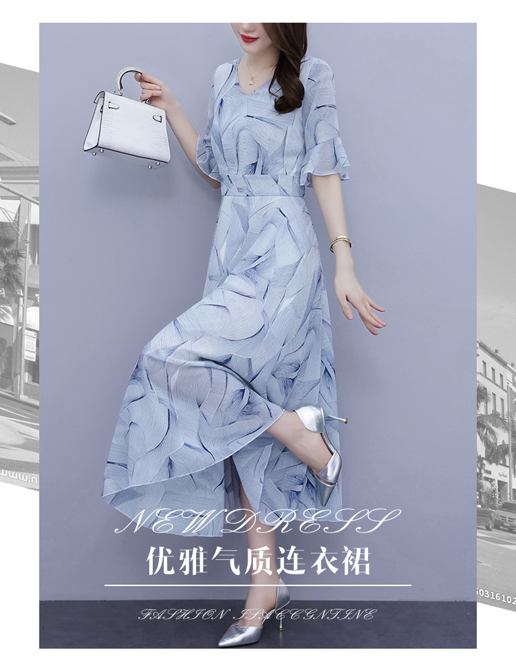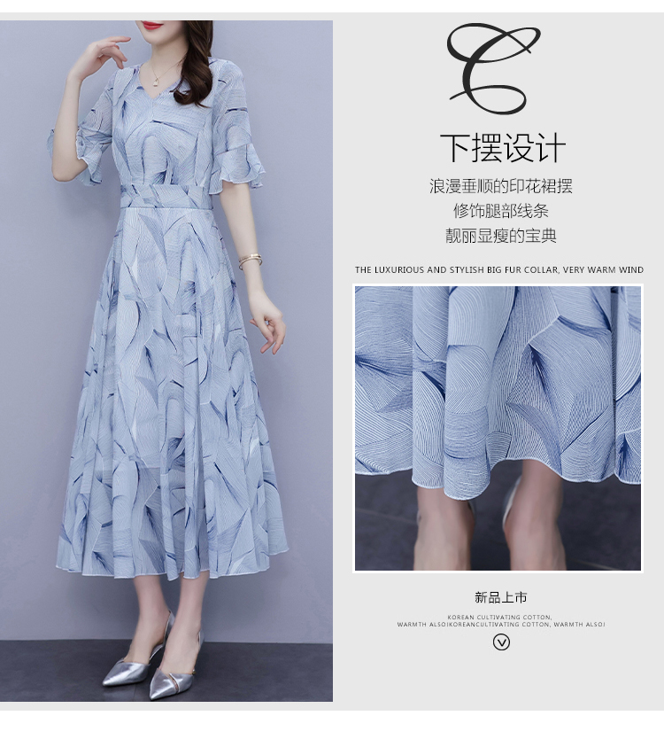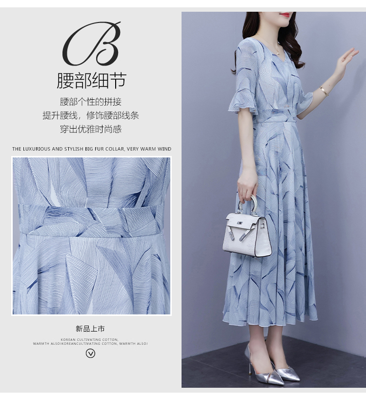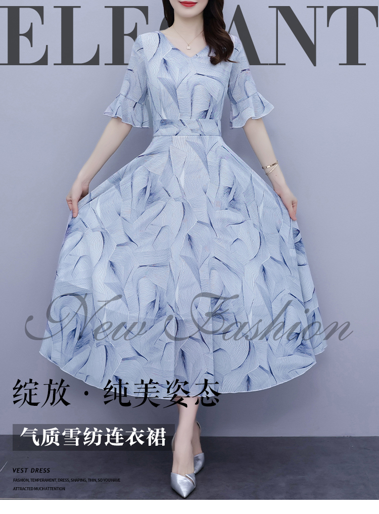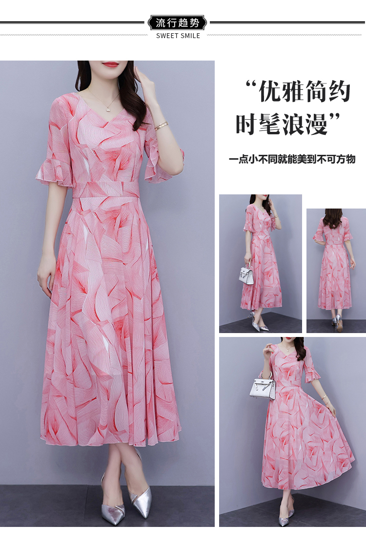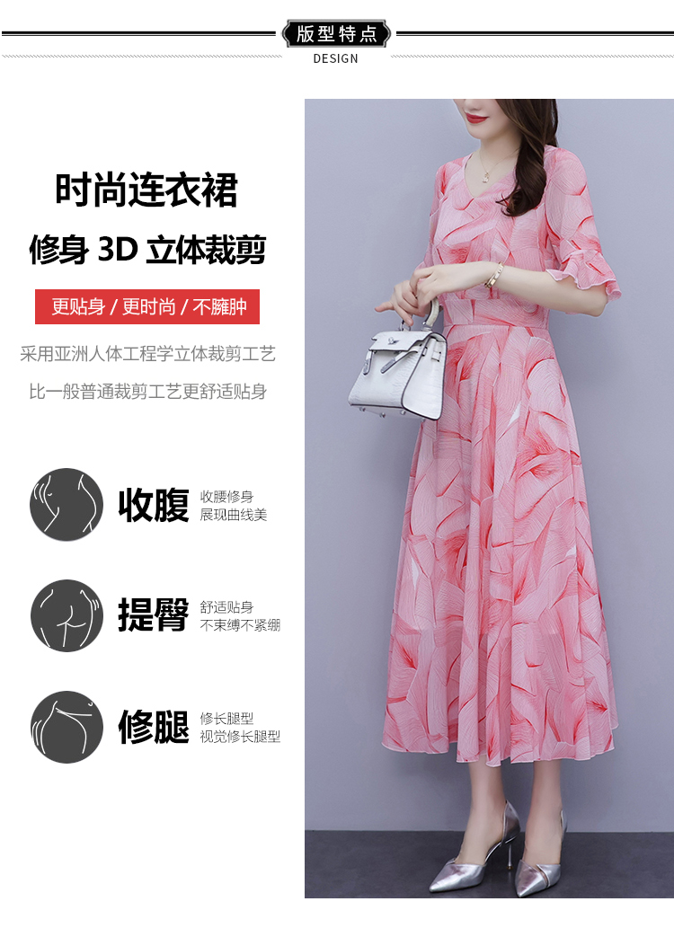 雪紡連衣裙子女裝夏季2022年新款收腰碎花胖MM大碼氣質(zhì)洋氣中長(zhǎng)裙