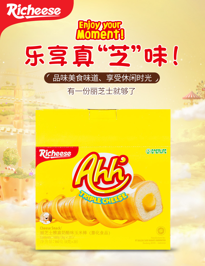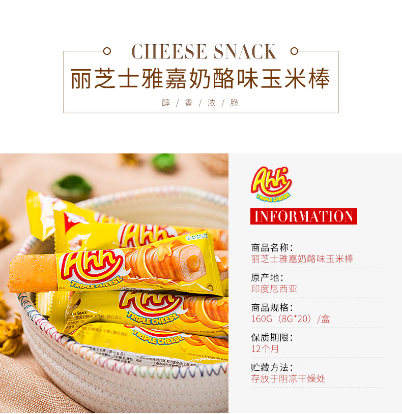 【滿99減50】印尼進口麗芝士雅嘉奶酪味玉米棒卷160g休閑小吃食品