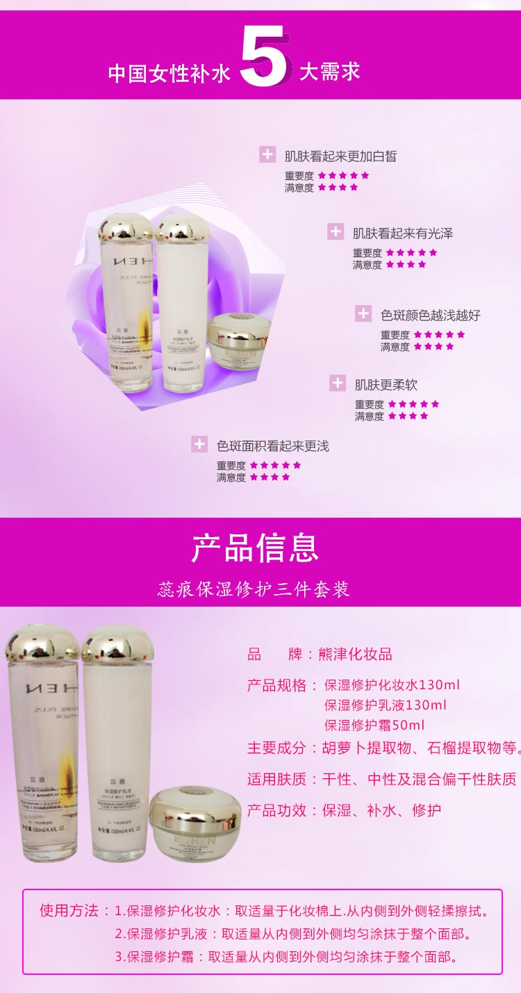 熊津化妝品官方 專柜正品蕊痕保濕修護(hù)三件套裝修護(hù)補(bǔ)水護(hù)膚品