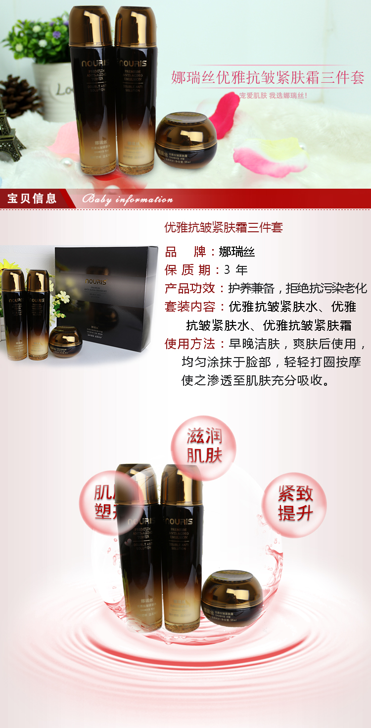 韓國熊津化妝品正品娜瑞絲優(yōu)雅抗皺緊膚霜保濕補(bǔ)水面部護(hù)理三件套