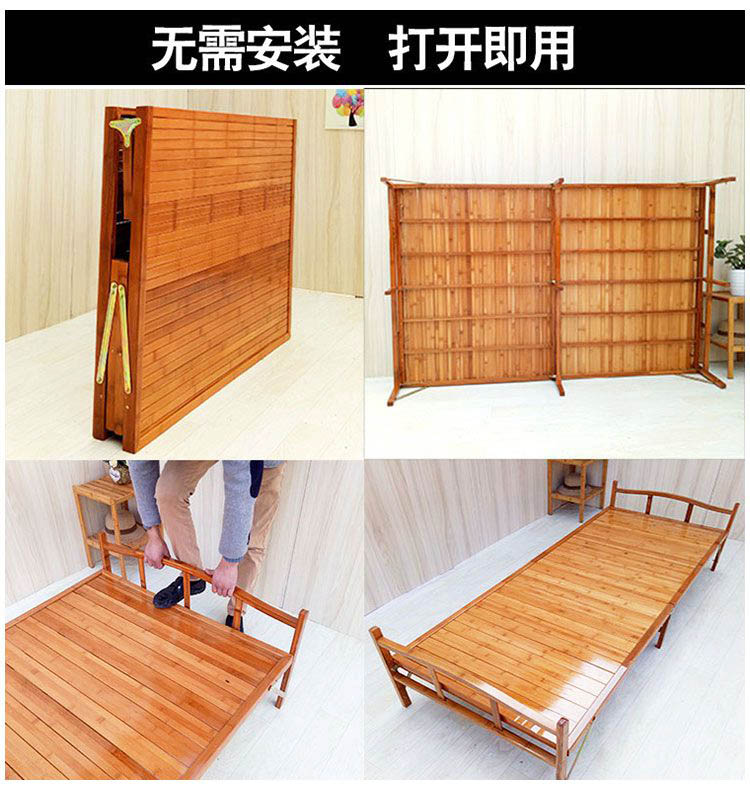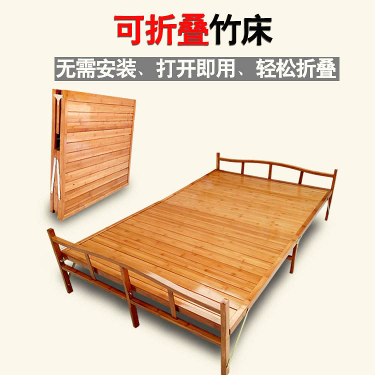 竹床折疊床單人雙人午睡實(shí)木家用簡易床1.5米出租房竹子成人硬板