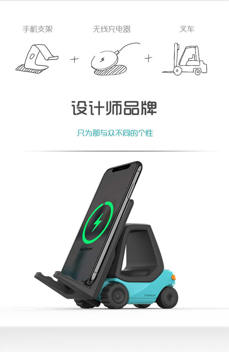 翎感小叉車手機(jī)無線充電三合一支架桌面擺件創(chuàng)意磁吸式快充禮物