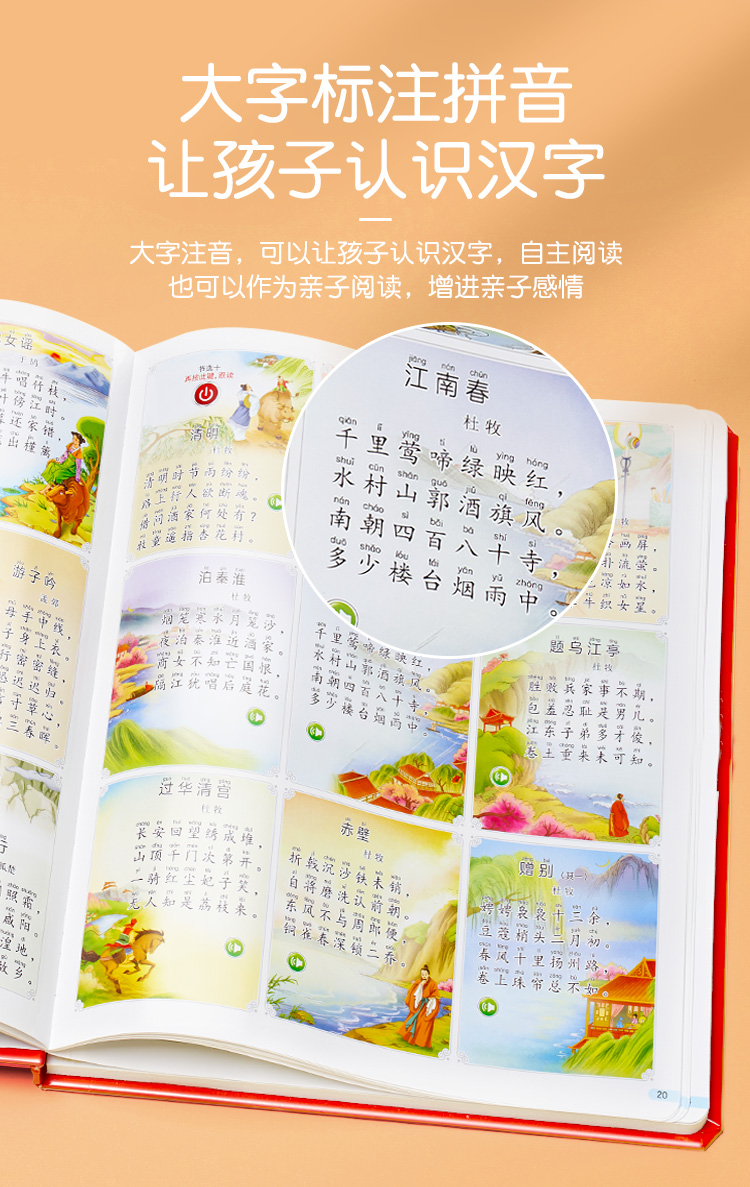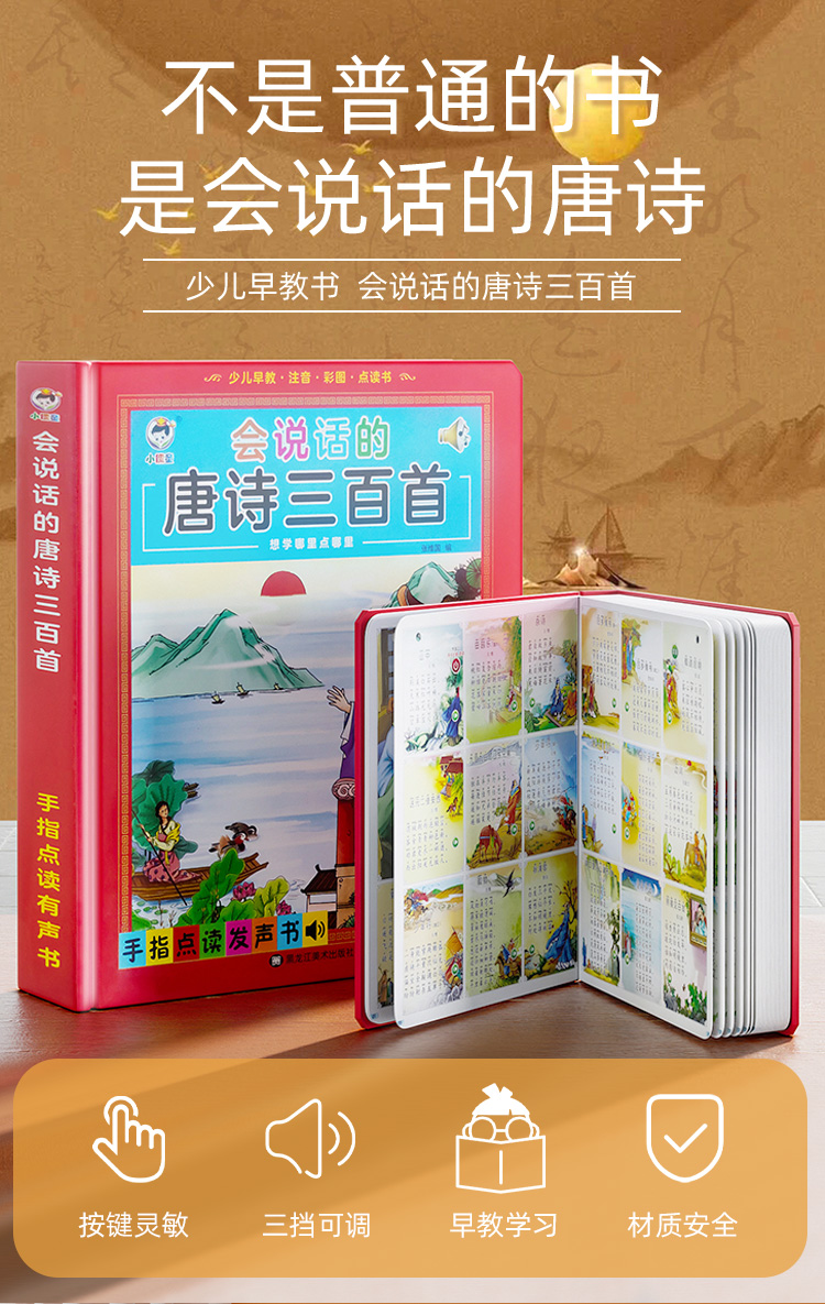 會說話的唐詩三百首點讀發(fā)聲書籍幼兒童有聲早教機300首古詩繪本