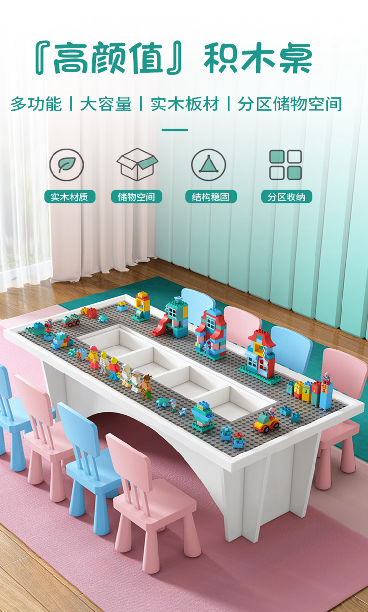 實(shí)木商用兒童多功能大號(hào)積木桌子寶寶玩具游樂(lè)兼容樂(lè)高桌手工益智