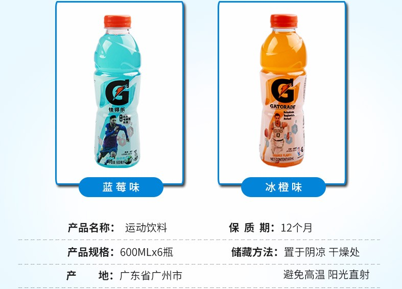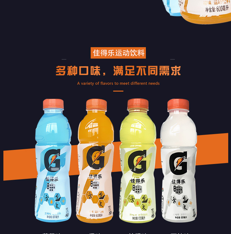 百事佳得樂解渴補(bǔ)充電解質(zhì)水600mlX4或8瓶橙味藍(lán)莓混合多味運(yùn)動(dòng)飲