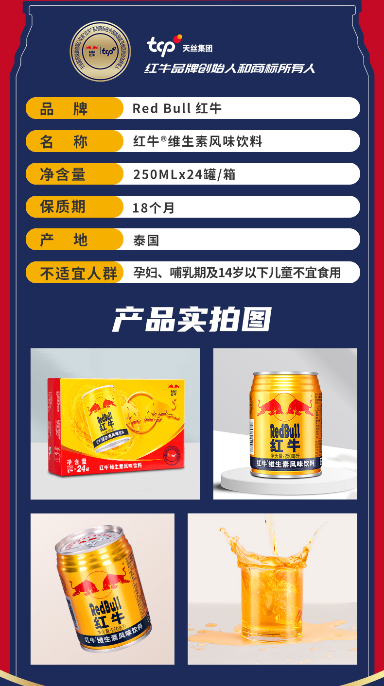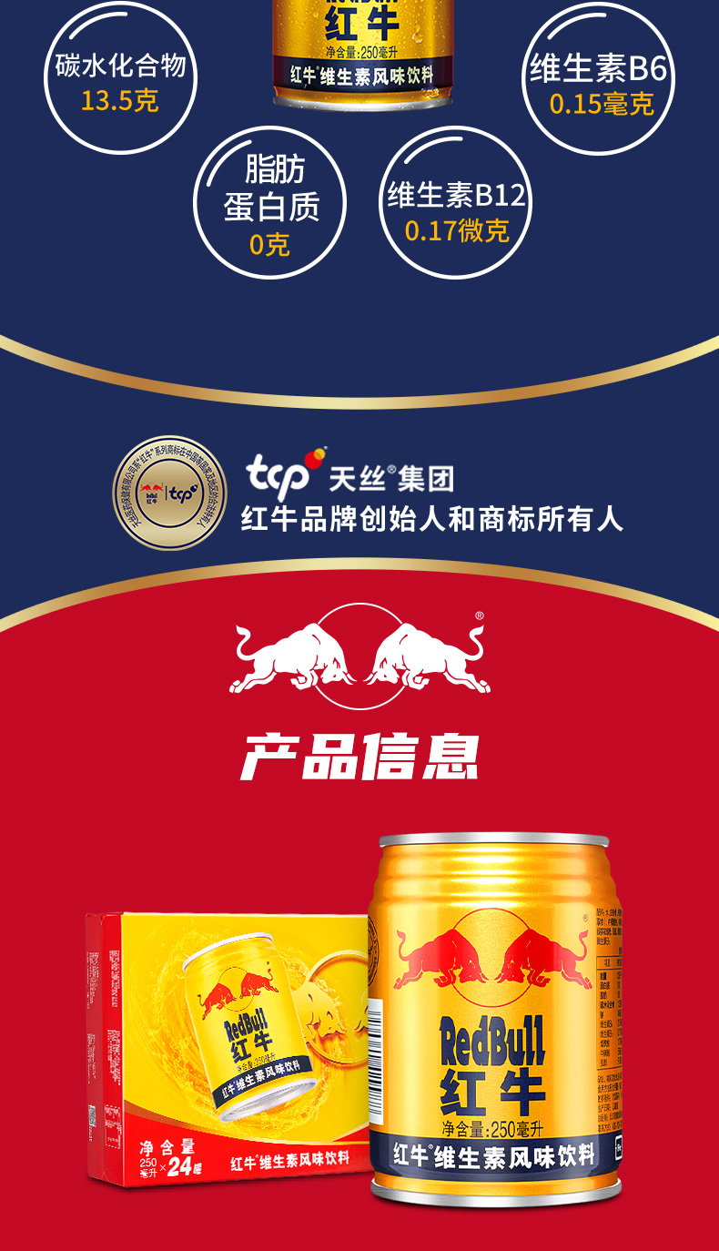 【自營】紅牛維生素風味飲料250ml*24罐/箱