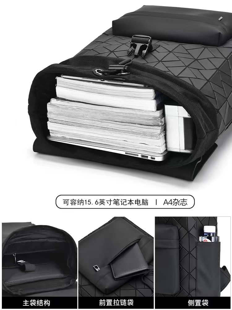 大容量潮牌雙肩包高級感時尚男包旅行包幾何菱格電腦書包背包