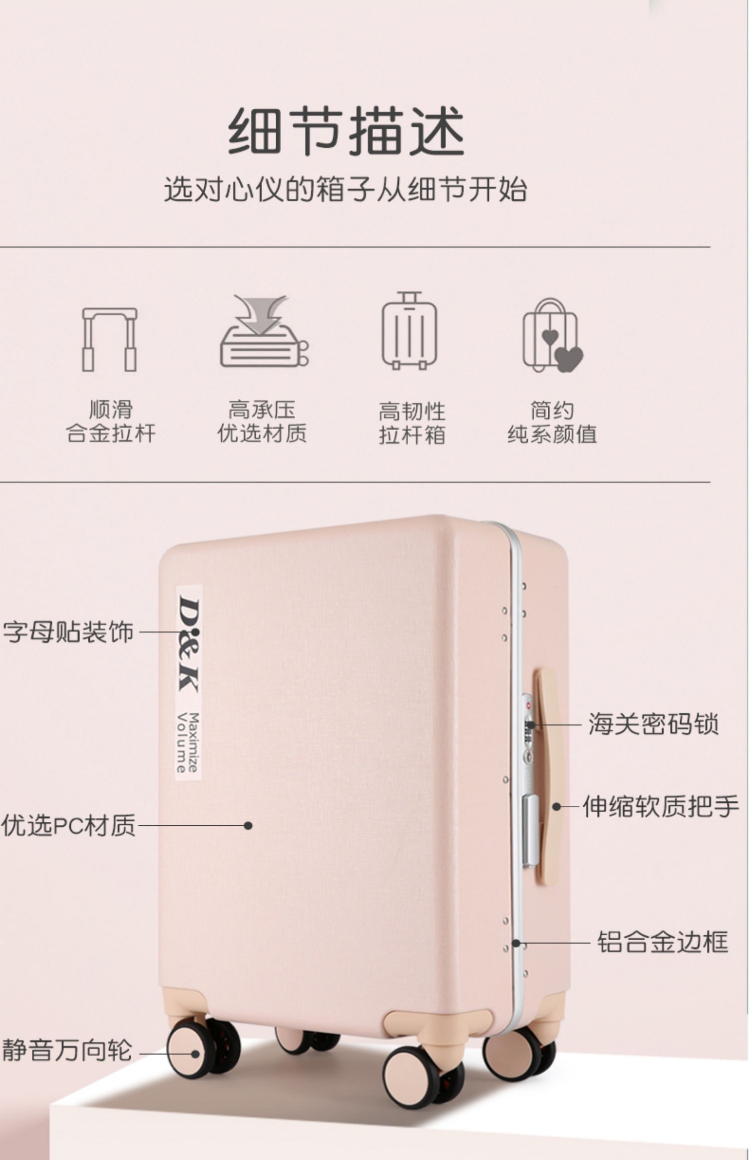 高顏值行李箱小型20寸旅行箱女皮箱拉桿箱男學(xué)生靜音萬(wàn)向輪鋁框箱