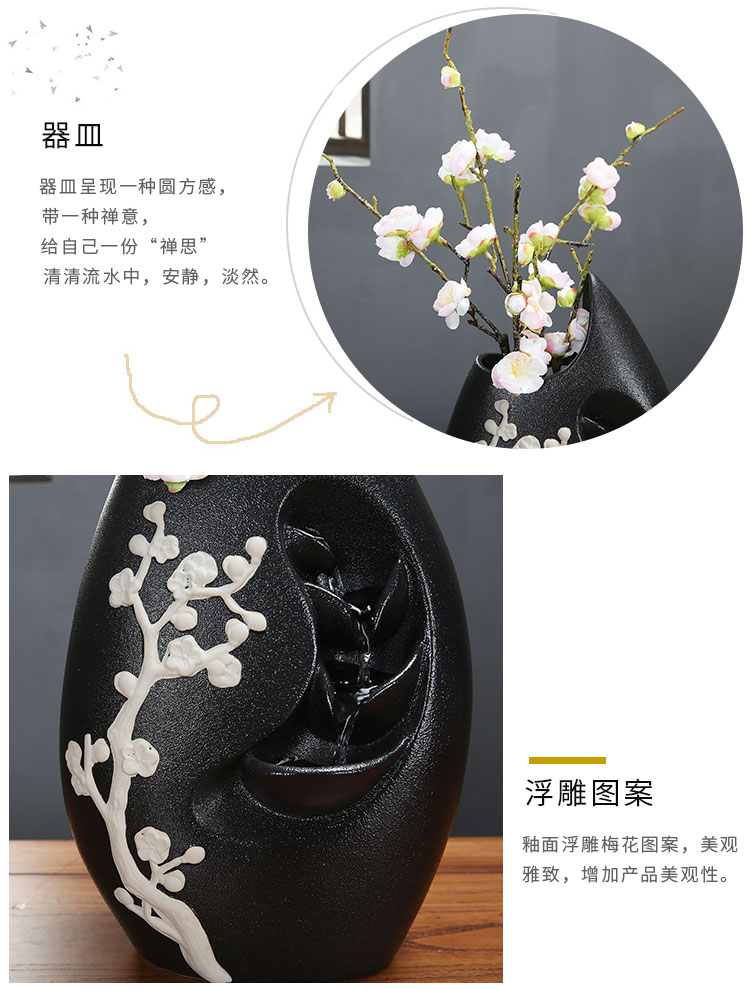 禪意陶瓷流水噴泉家居室內(nèi)盆景新中式簡約招財創(chuàng)意小擺件裝飾禮品