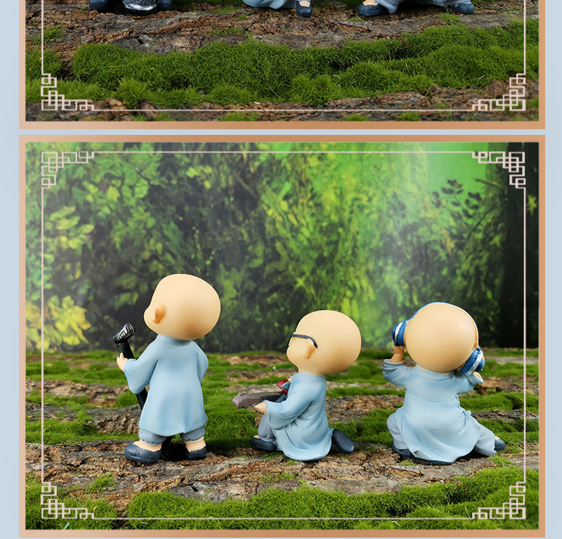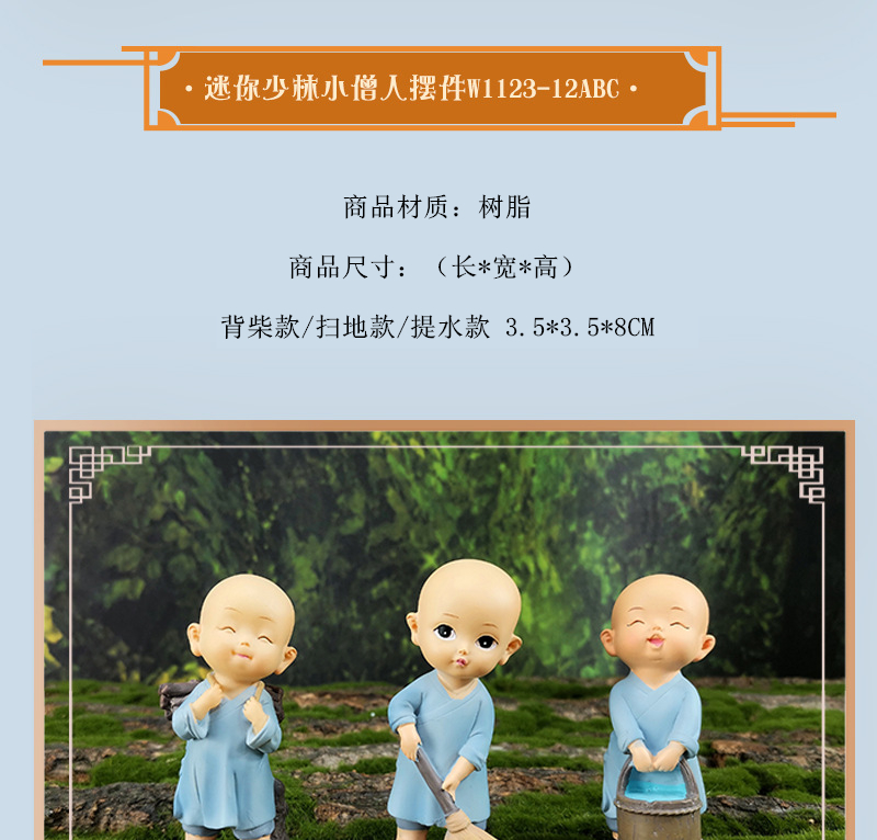 禪意沙彌小和尚擺件裝飾品古風(fēng)客廳書(shū)房桌面創(chuàng)意樹(shù)脂公仔情緒穩(wěn)定