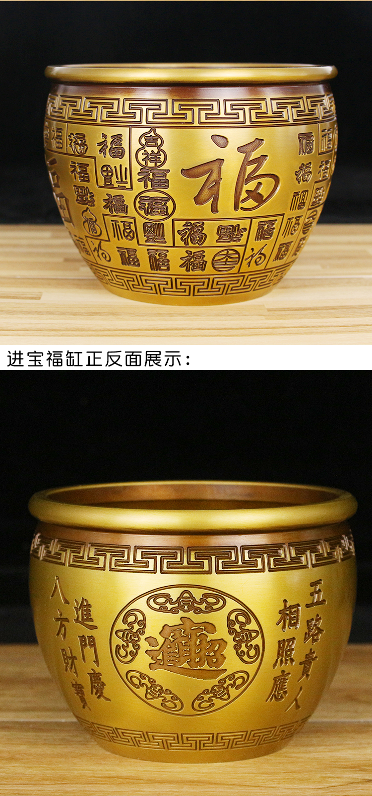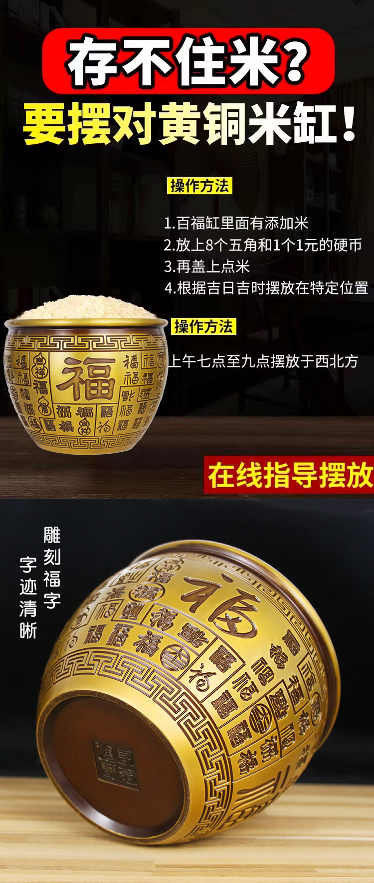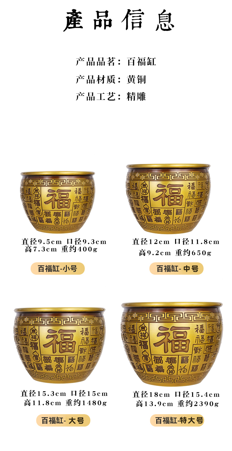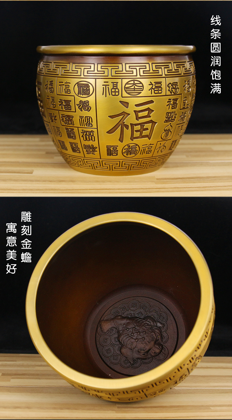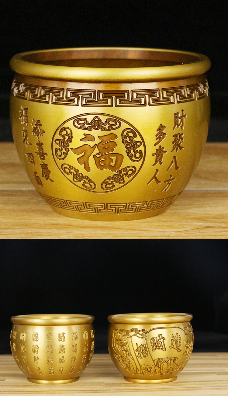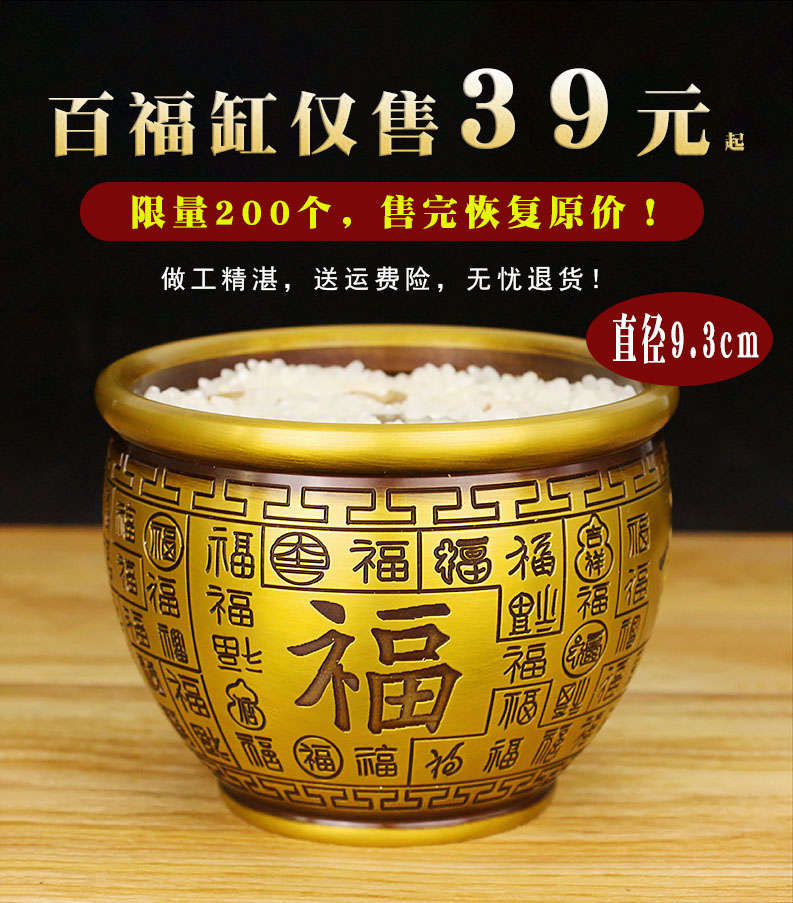 黃銅米缸純銅百福缸擺件小招財(cái)進(jìn)寶缸聚寶盆零錢缸煙灰缸家居飾品