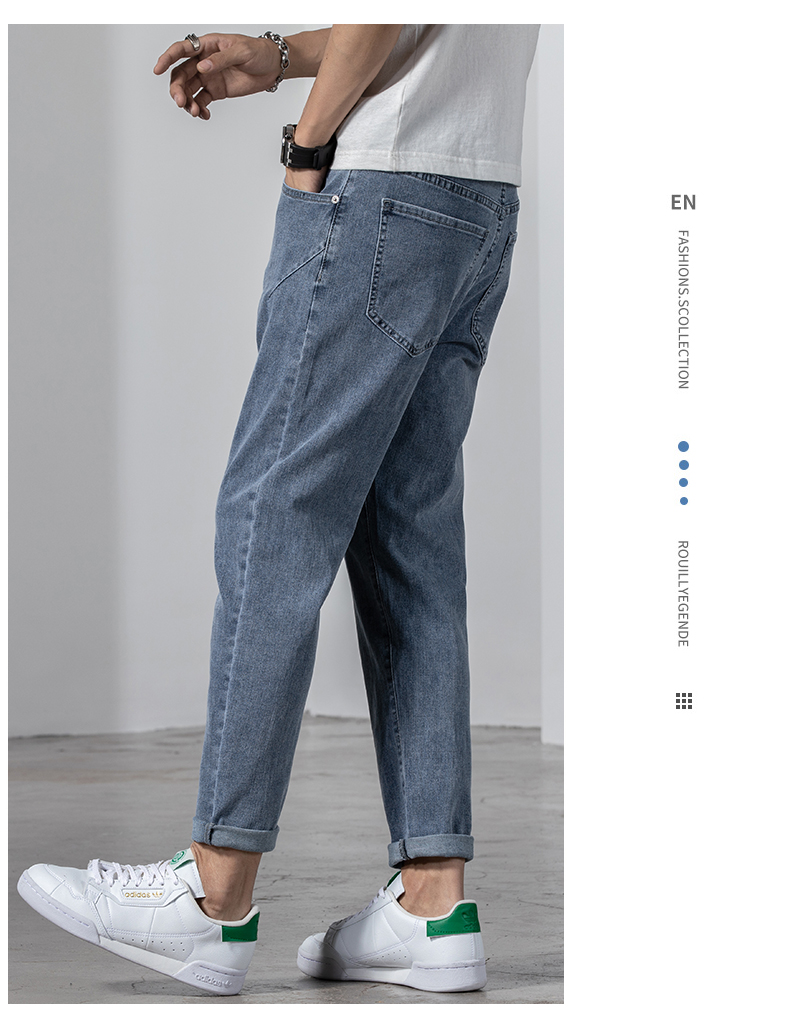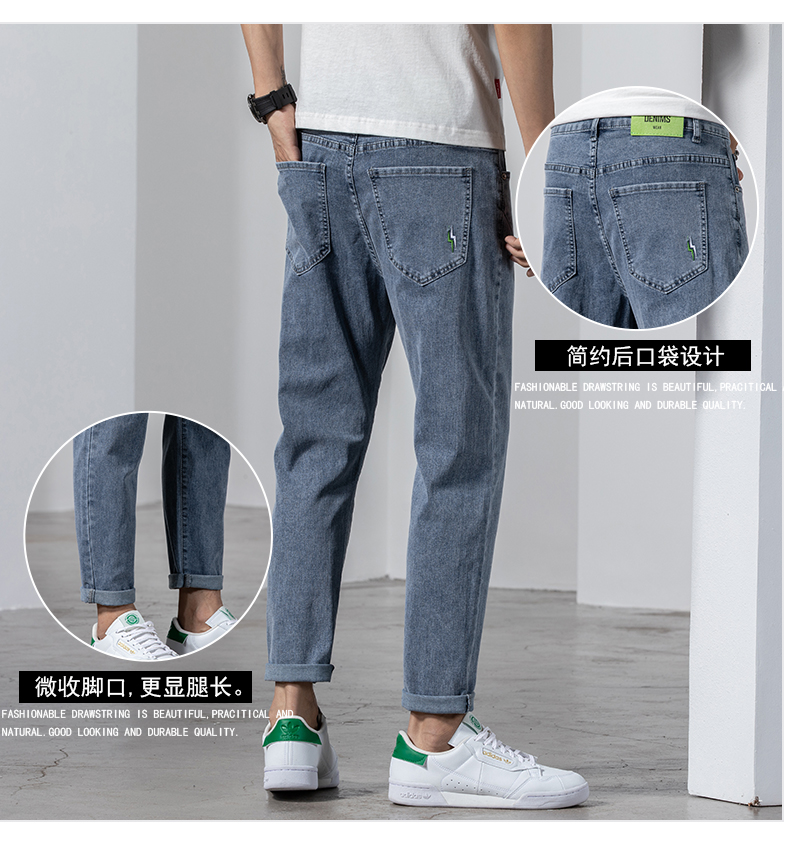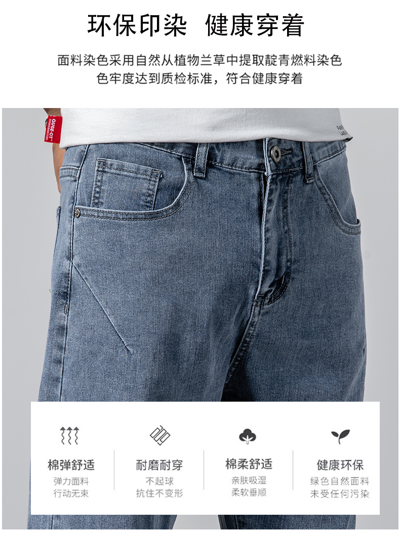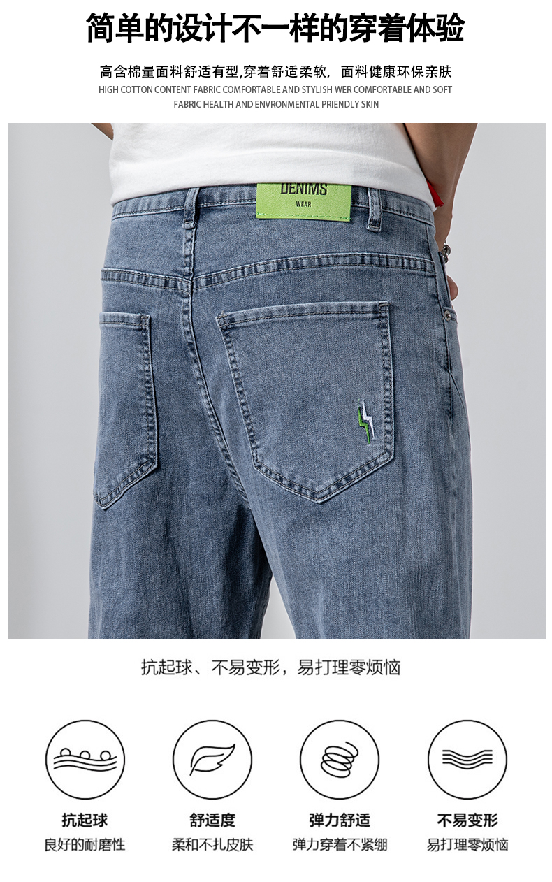 牛仔褲男士夏天潮牌寬松直筒九分2022新款薄款休閑男裝夏季長褲子