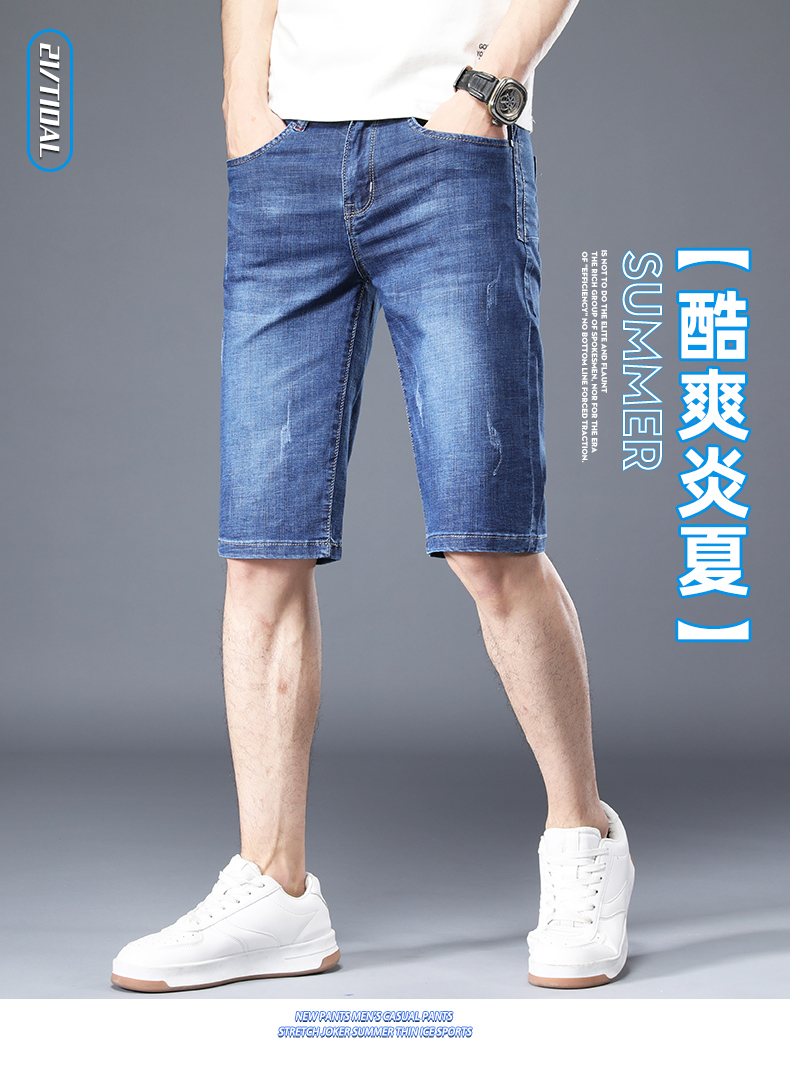 夏季薄款牛仔短褲男寬松男款中褲褲子新款男士休閑男裝牛仔五分褲