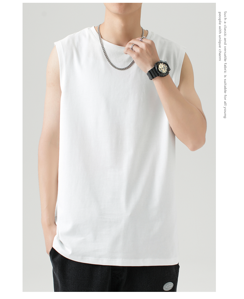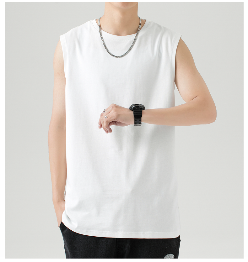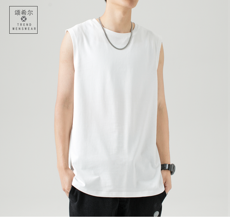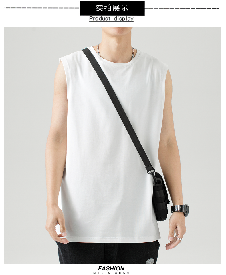 無袖背心男士夏季潮牌純棉健身運動坎肩衣服打底男裝白色短袖t恤